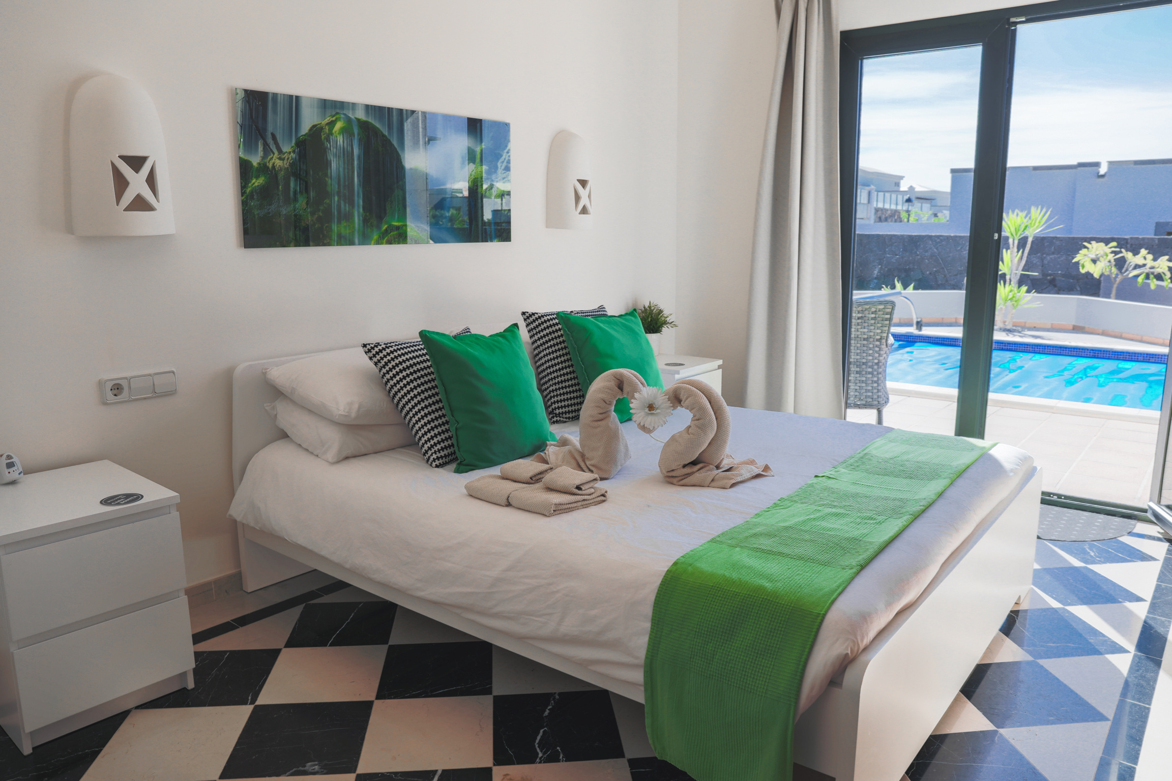 Decorated and furnished in a contemporary style throughout, the villa has an open lounge area leading to the sun terrace, two double